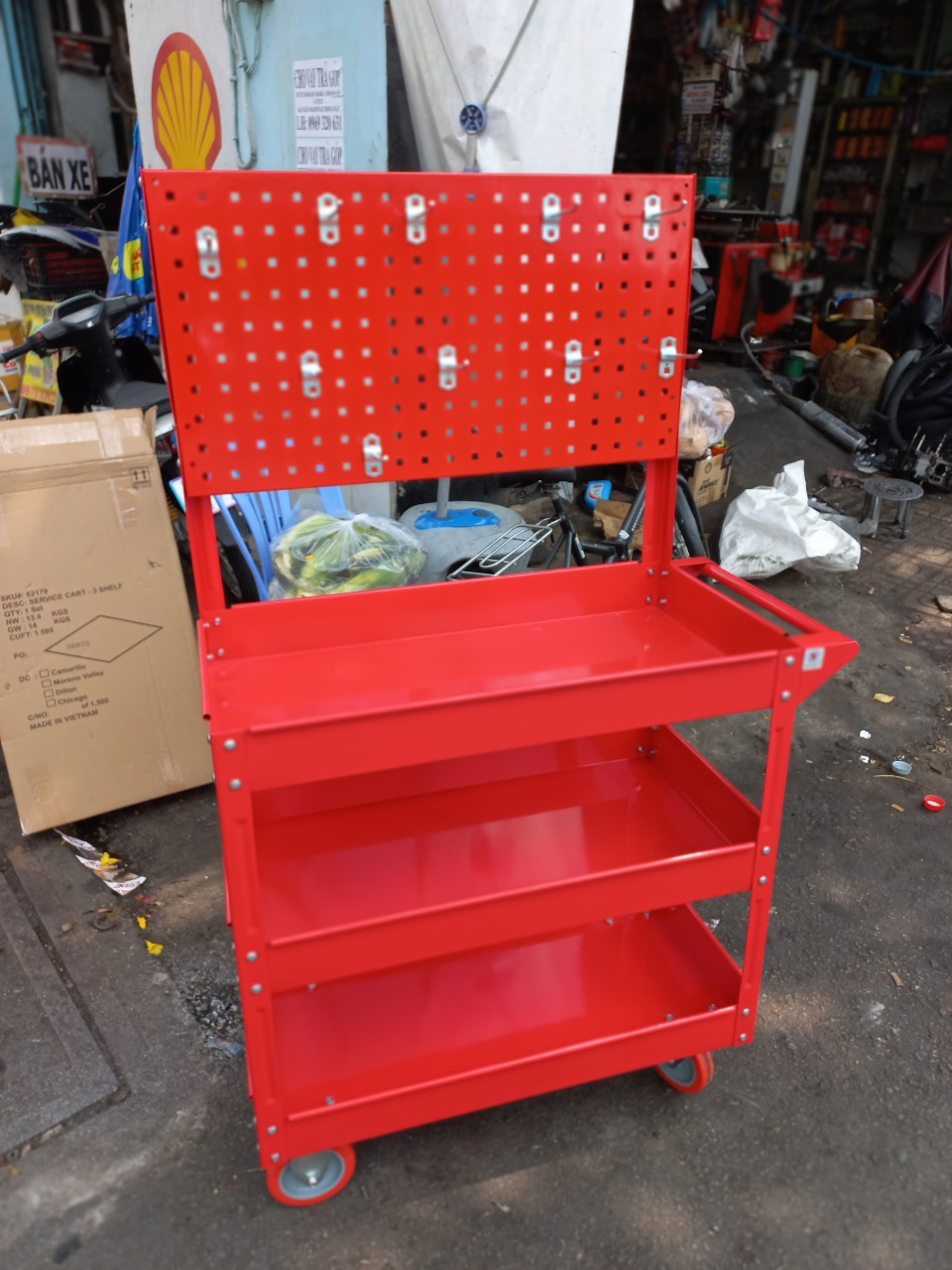 Xe đẩy 3 ngăn , Xe đẩy 3 kệ treo dụng cụ bảng treo cơ khí